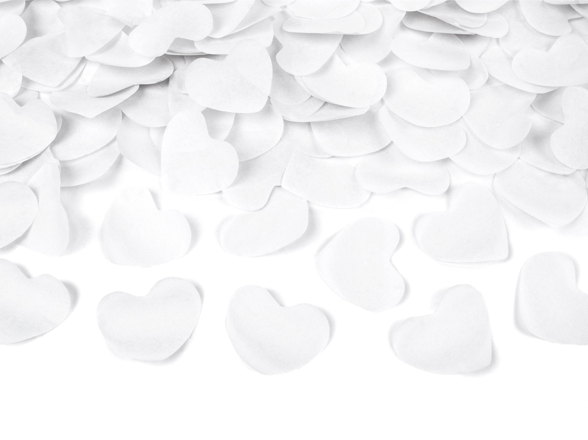 En konfettikanon som skjuter ut vita hjärtan av blottingpapper, perfekt för romantiska och festliga tillfällen.