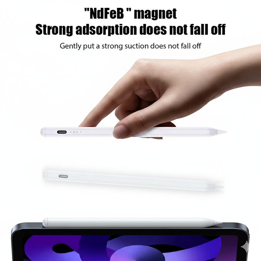 Upplev ultimat precision och smidighet med vår högkvalitativa styluspenna för iPad. Perfekt för anteckningar, skisser, design och vardagsanvändning. Tack vare Palm Rejection kan du vila handen på skärmen utan störningar, och lutningskänsligheten ger dig full kontroll över linjetjockleken – nästan som penna på papper. Ingen Bluetooth krävs, och den magnetiska fästfunktionen gör att pennan alltid är nära till hands.